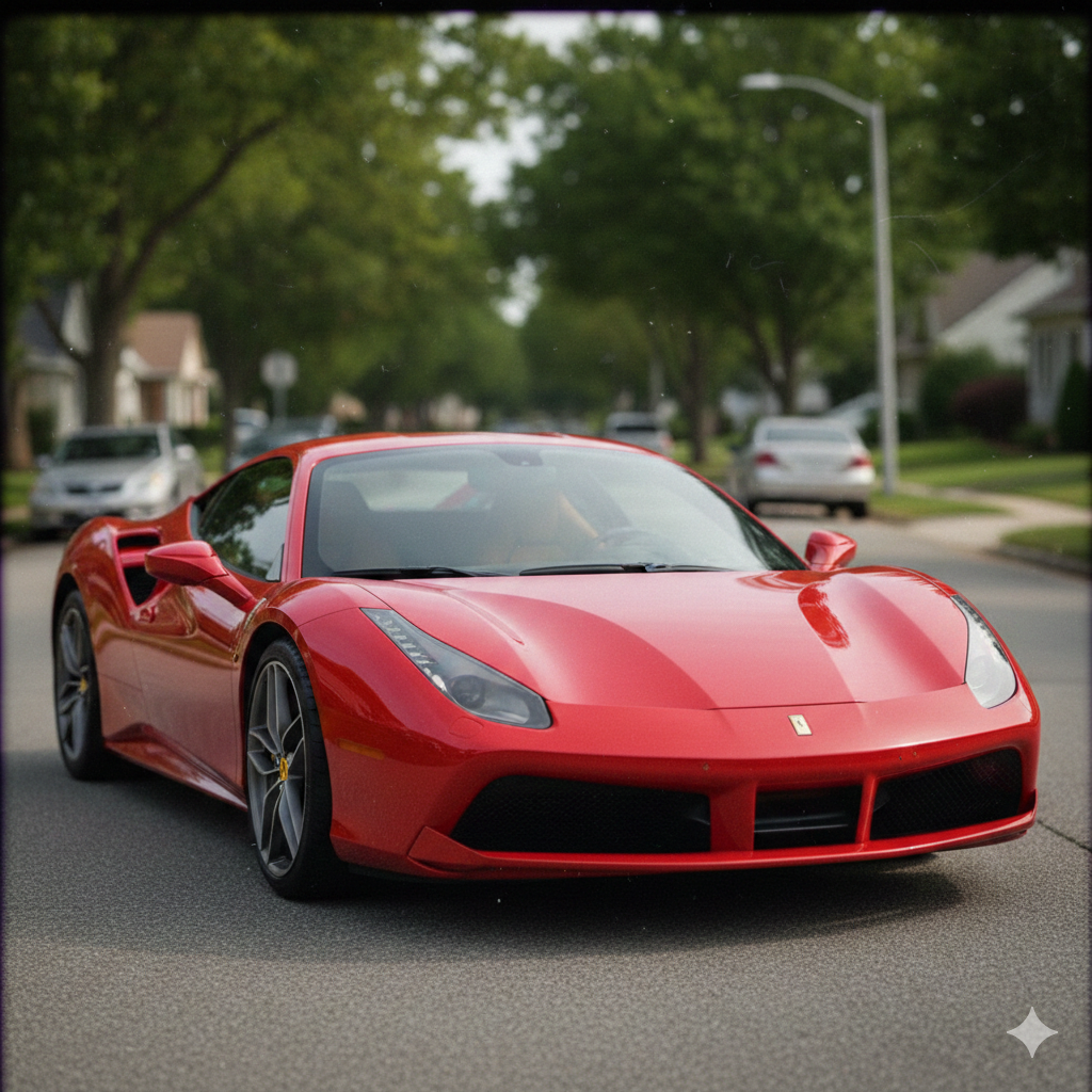 The image generation prompt used to create the AI motorcycle image in our sample set was specifically crafted to mimic real camera characteristics: